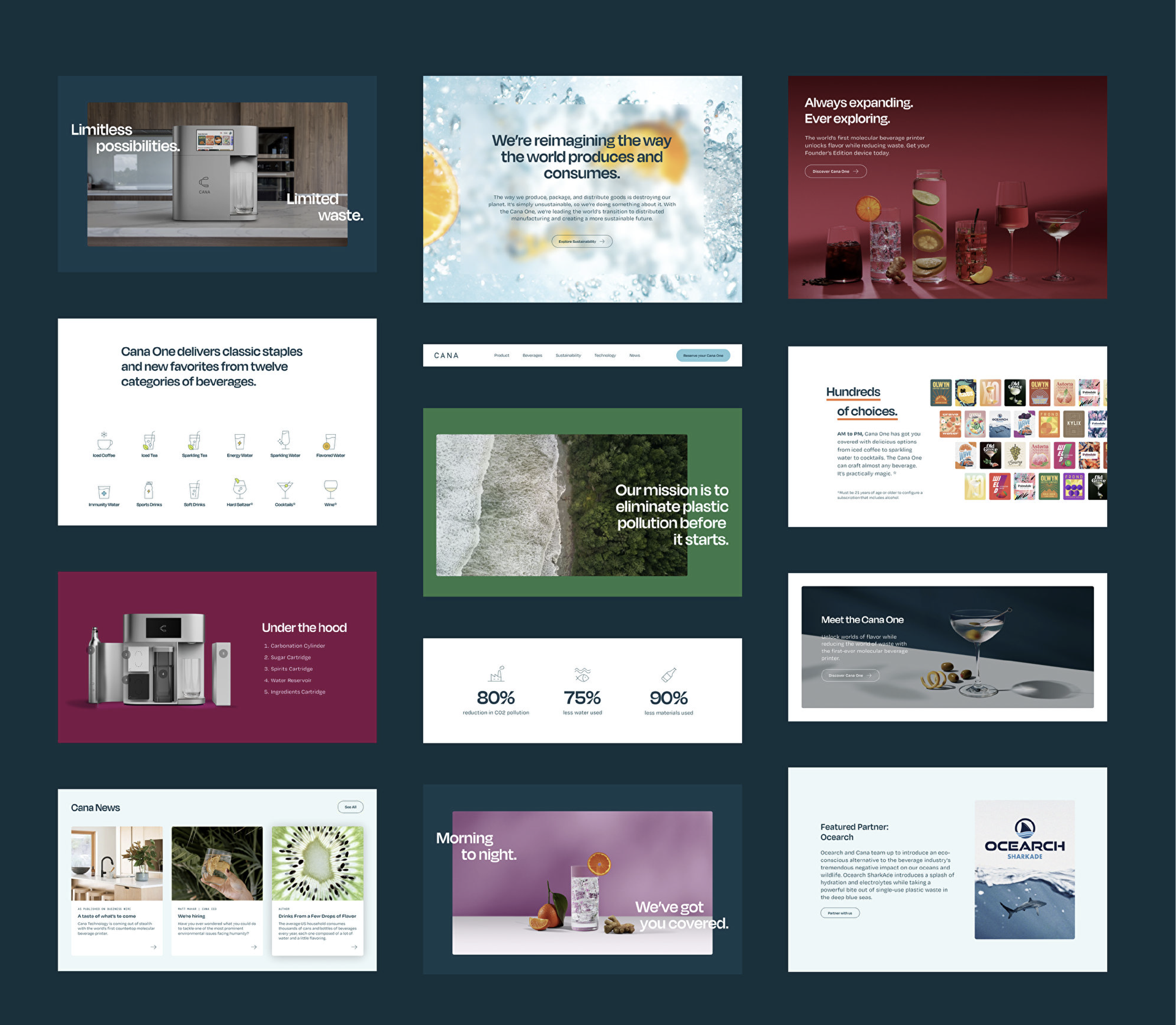 The final brand positioned Cana as a confident, forward-thinking entrant in the beverage space. The system clearly communicated the product’s technological innovation and sustainability message while remaining visually flexible enough to support rapid growth. The launch assets provided Cana with a cohesive foundation to introduce their product, tell their story, and build recognition across channels.
