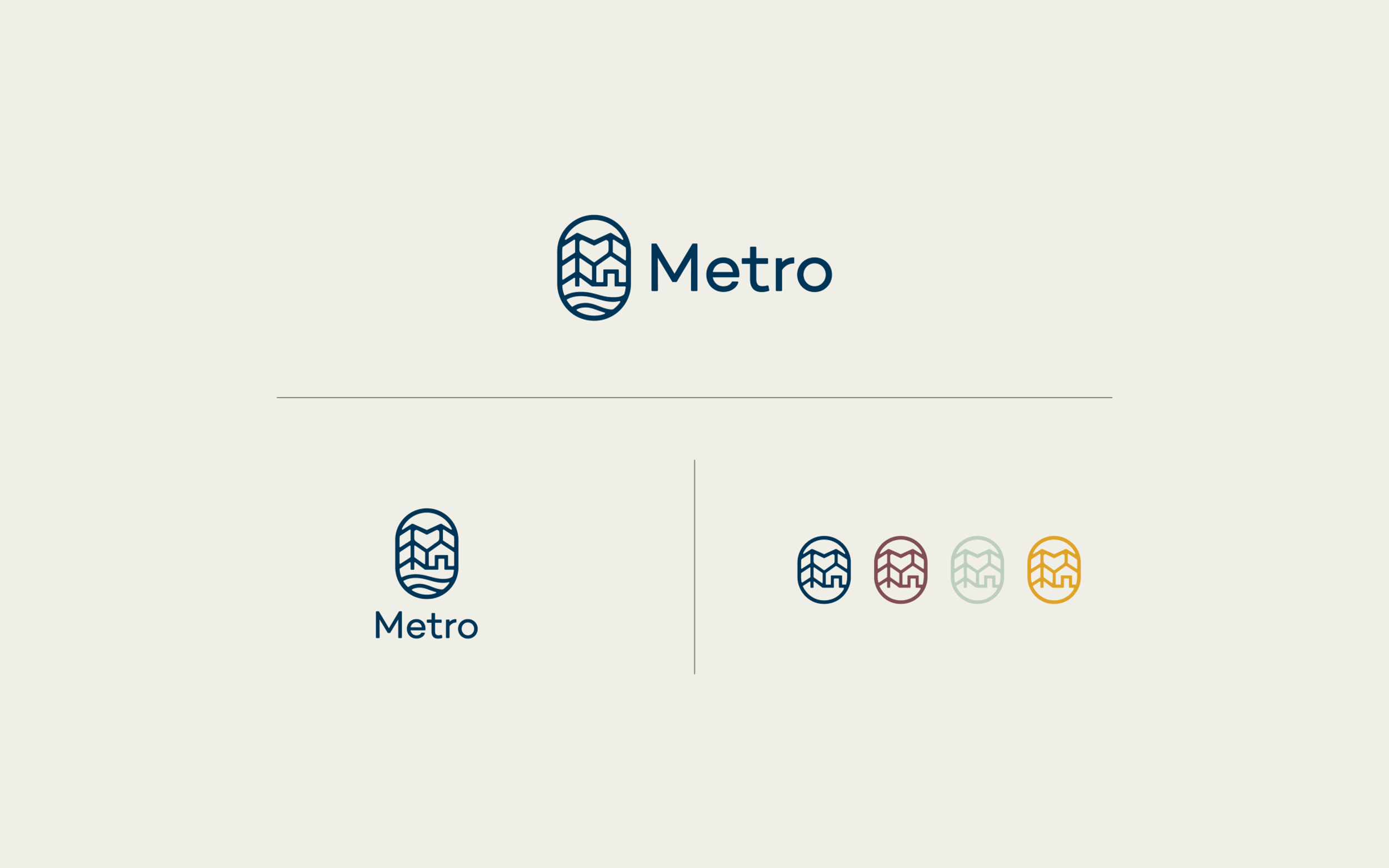 Metro is the nation’s only elected regional government, serving the greater Portland area. Their work spans urban growth planning, waste and recycling services, public spaces, and stewardship of places like Metro Parks and the Oregon Zoo, all with the goal of making the region a sustainable place to live. I joined the project during logo development, supporting the creation of a brand system that could represent Metro’s broad scope while remaining clear, welcoming, and civic-minded.