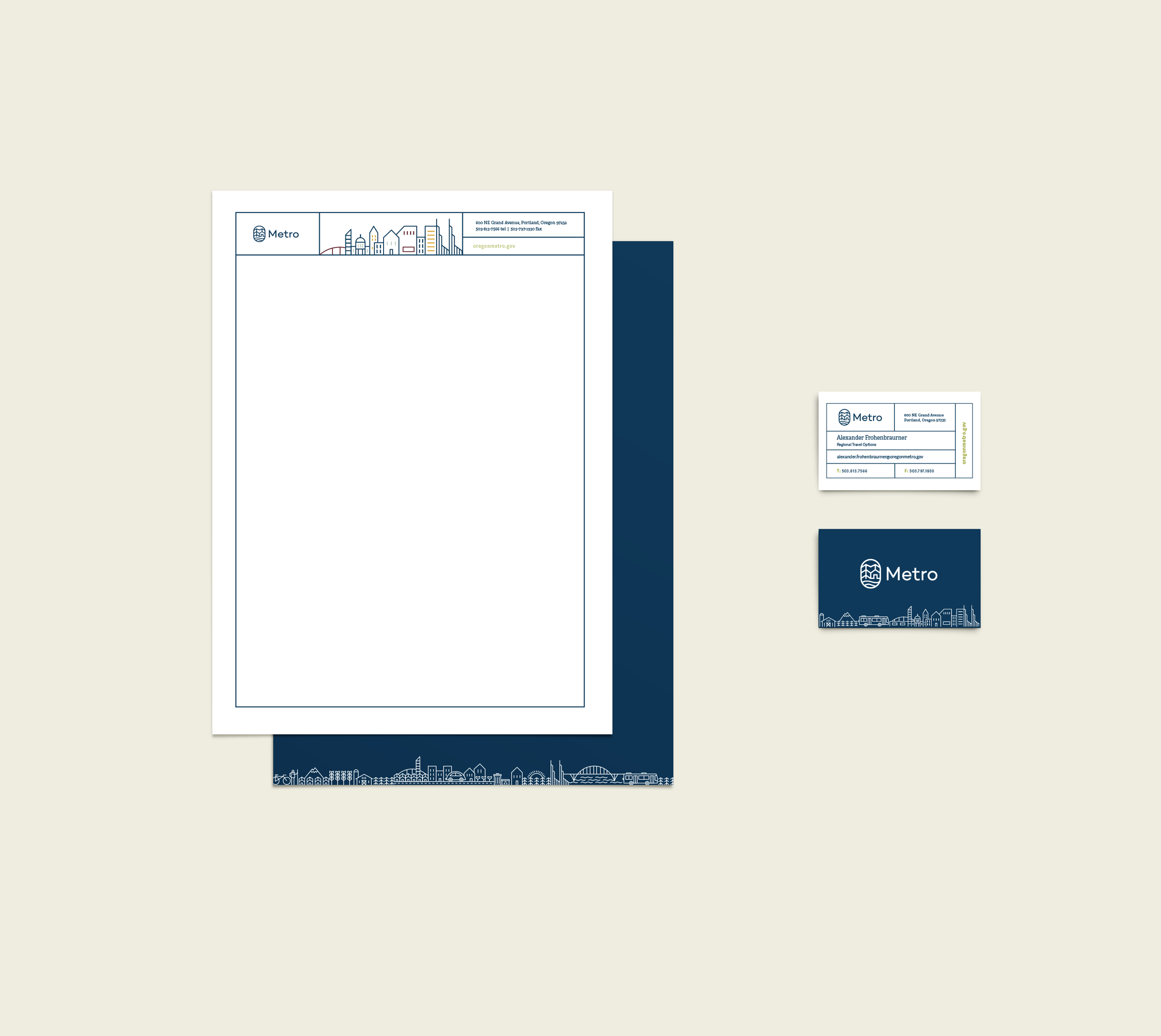 A key part of my role was designing custom illustrations derived from the logo. These visuals highlighted the many ways Metro serves the community and added warmth and approachability to a complex government organization. I then applied the system across stationery, mailers, and Metro’s local publication, Our Big Backyard, and contributed to the development of comprehensive brand guidelines.