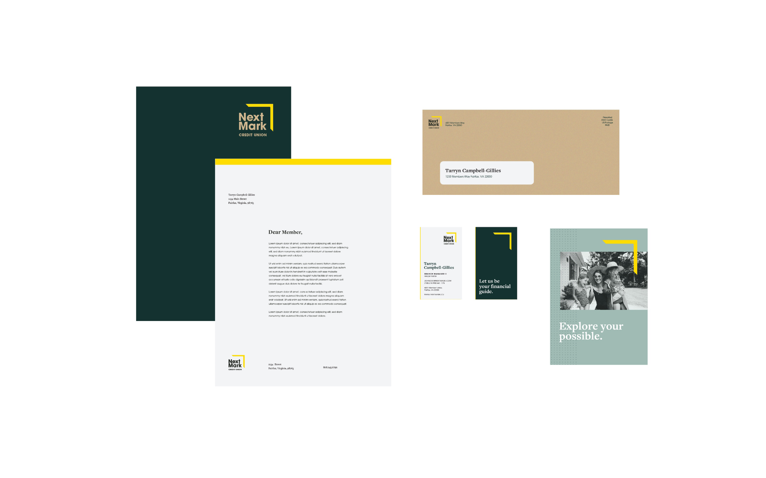 Next Mark Credit Union, based in Fairfax, Virginia, needed a new brand to support their new name and reflect who they serve. While at Ziba, I helped lead the creation of a complete brand identity that felt modern, trustworthy, and rooted in community.